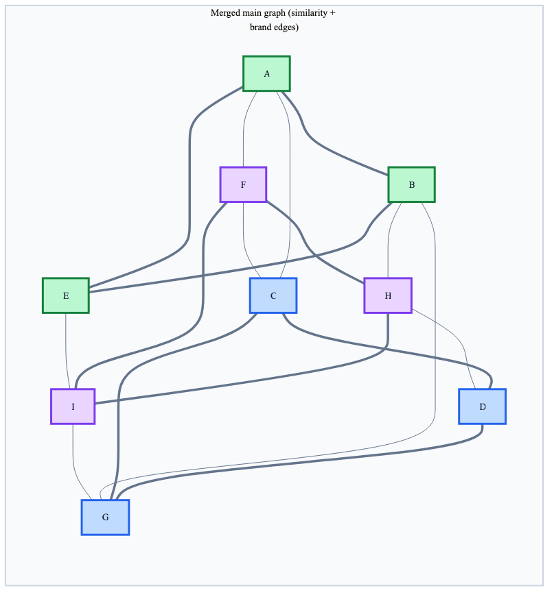 It’s very important to know that connectivity between different brands is not enforced by these subgraphs. Cross-brand connections rely on similarity links in the main graph, which may or may not survive filtering.